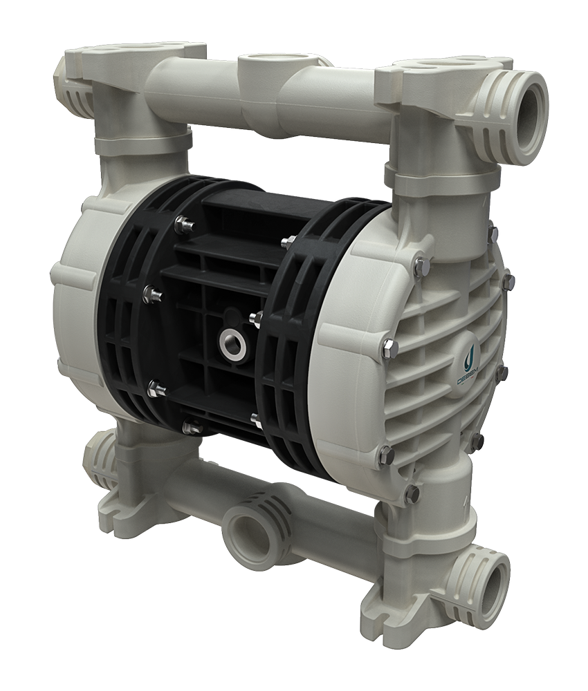 Pompy AODD, czyli pneumatyczne pompy dwumembranowe, to rodzaj pomp wyporowych, które jako źródło zasilania wykorzystują sprężone powietrze. W tego typu pompach membranowych sprężone powietrze jest naprzemiennie kierowane do jednej z dwóch komór roboczych za pomocą wału łączącego, co pozwala na ich jednoczesny ruch. Ten posuwisto-zwrotny ruch wypycha ciecz z jednej komory do rurociągu tłocznego, podczas gdy druga komora w tym samym czasie napełnia się cieczą.